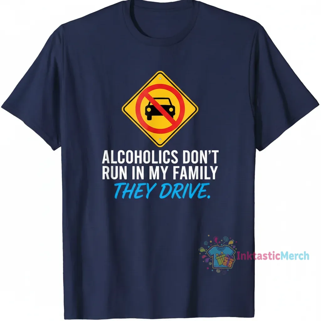 Make a bold statement and showcase your unique sense of humor with the ‘Alcoholics Don’t Run in My Family They Drive Shirt,’ a conversation starter designed for those who appreciate witty graphic tees. Crafted from premium, pre-shrunk cotton and vibrant, eco-friendly inks, this shirt offers unparalleled comfort and lasting shape, ensuring your design stays bold and bright. Discover more quality apparel at inktasticmerch.com.