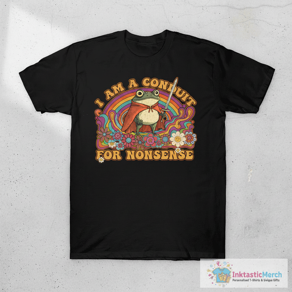 Bring your style to life with the Funny Frog Meme I Am A Conduit For Nonsense T-Shirt today!