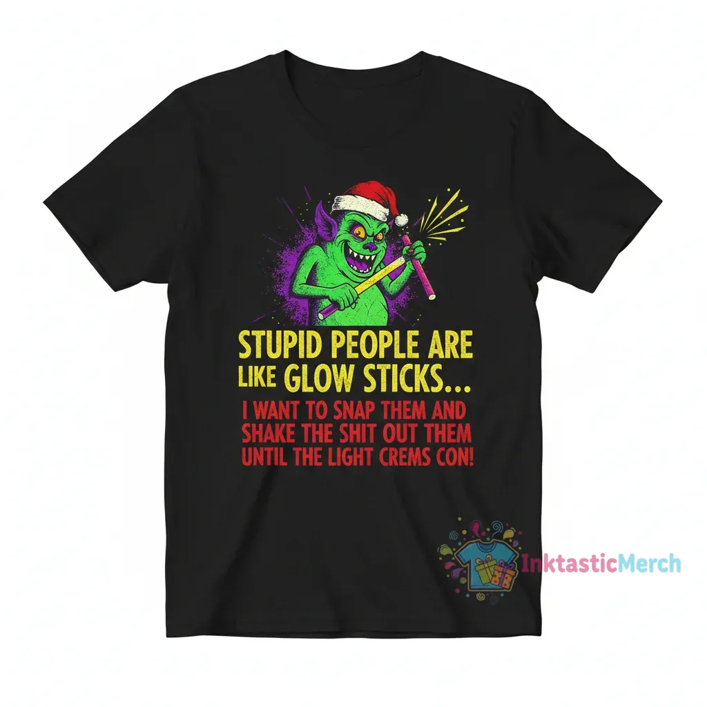 Tired of boring holiday tees that fade after one wash? Ready to embrace the festive spirit with a rebellious twist? Introducing the ultimate Grinch Christmas shirt for those who appreciate a good laugh and a touch of honest humor. Our “Stupid people are like glow sticks I want to snap them and shake the shit out of them until the light comes on” shirt isn’t just apparel; it’s a statement piece that captures the iconic Grinch’s sentiment with hilarious clarity. Perfect for anyone looking to stand out and spread some unconventional holiday cheer.