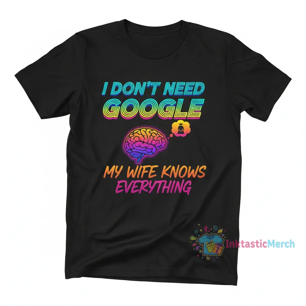 This “I Don’t Need Google, My Wife Knows Everything” T-shirt from InktasticMerch is crafted from 100% ring-spun cotton for exceptional softness and breathability, ensuring all-day comfort. Designed with a modern retail fit and side-seamed construction, it offers a flattering silhouette and enhanced durability, making it a witty and long-lasting gift for any occasion.