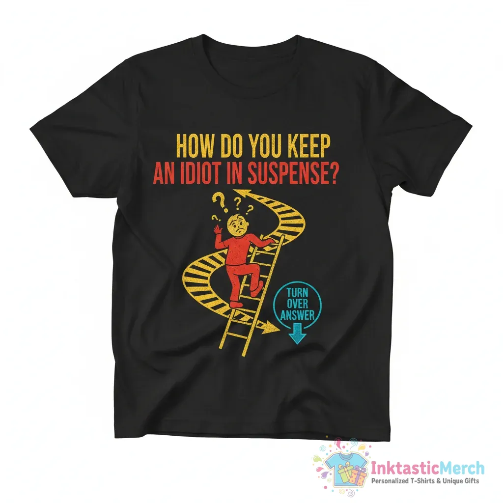 Bring your style to life with the Funny Joke – How Do You Keep An Idiot In Suspense? Essential T-Shirt today!