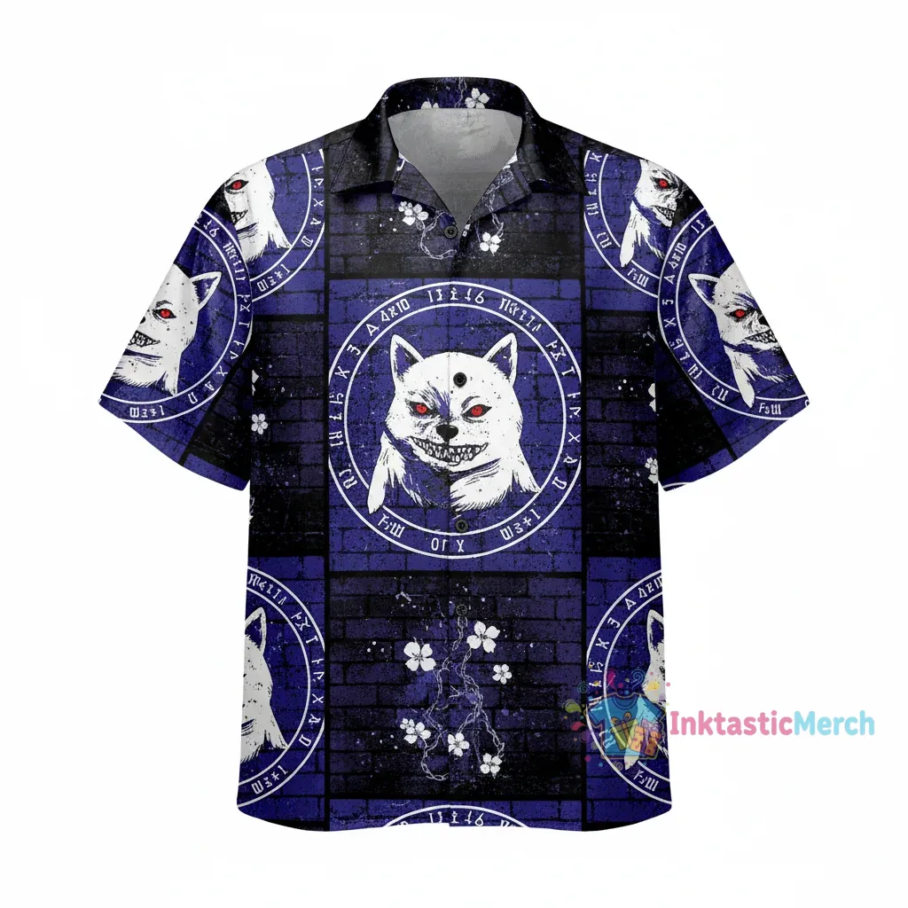 This design thoughtfully reimagines the tragic story of Nina Tucker and her dog through a vibrant, almost dreamlike Hawaiian lens. The “brick vertical” style adds a unique textural quality, making the familiar characters appear in a new, artistic light. It’s a visual narrative that balances the intense emotional weight of their story with an unexpectedly beautiful artistic execution. The composition invites viewers to appreciate the artistry while reflecting on the profound themes of loyalty and sacrifice depicted. Wearing this shirt is like carrying a piece of art that tells a story of love and loss, interpreted with striking originality.