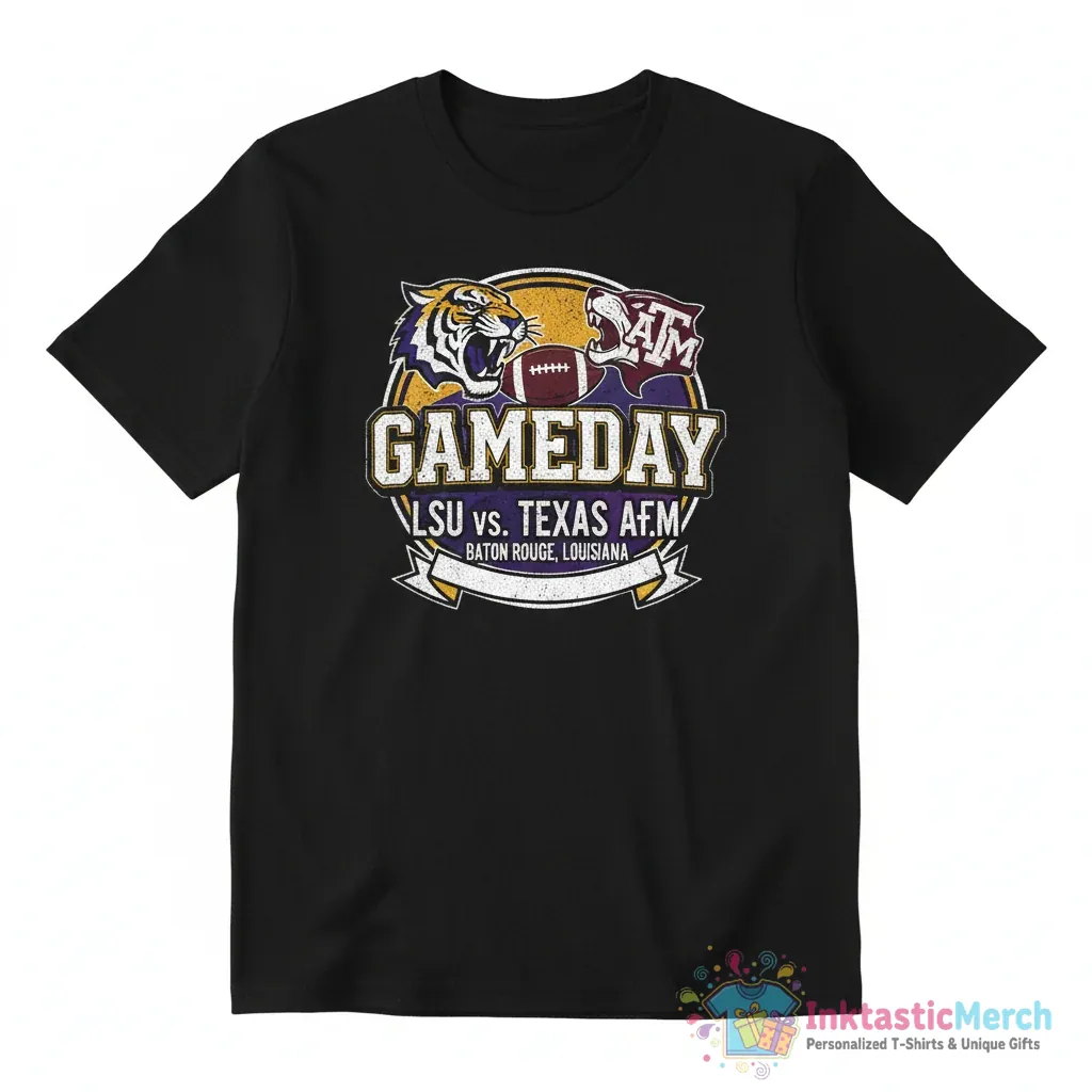 Show your team spirit with the ultimate Game Day LSU Tigers vs Texas A&M Aggies Baton Rouge Louisiana shirt from InktasticMerch. Crafted for ultimate comfort with ultra-soft, high-quality fabric, this durable tee ensures you can cheer game after game. Its classic unisex fit provides a comfortable and flattering feel, making it your new favorite way to represent your team.