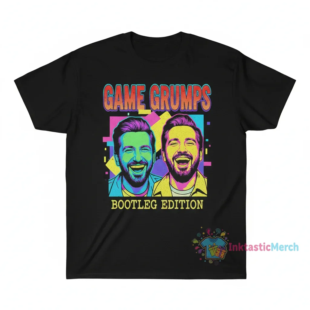 This Game Grumps Bootleg Photo T-Shirt is a must-have for any dedicated fan, celebrating the iconic duo with a unique, retro-inspired graphic. Designed for ultimate comfort and style, this tee brings your favorite internet personalities to your wardrobe. Perfect for casual wear, conventions, or showing off your love for the Game Grumps community, this shirt is a statement piece that resonates with humor and shared fandom. It’s more than just apparel; it’s a piece of internet culture you can wear.