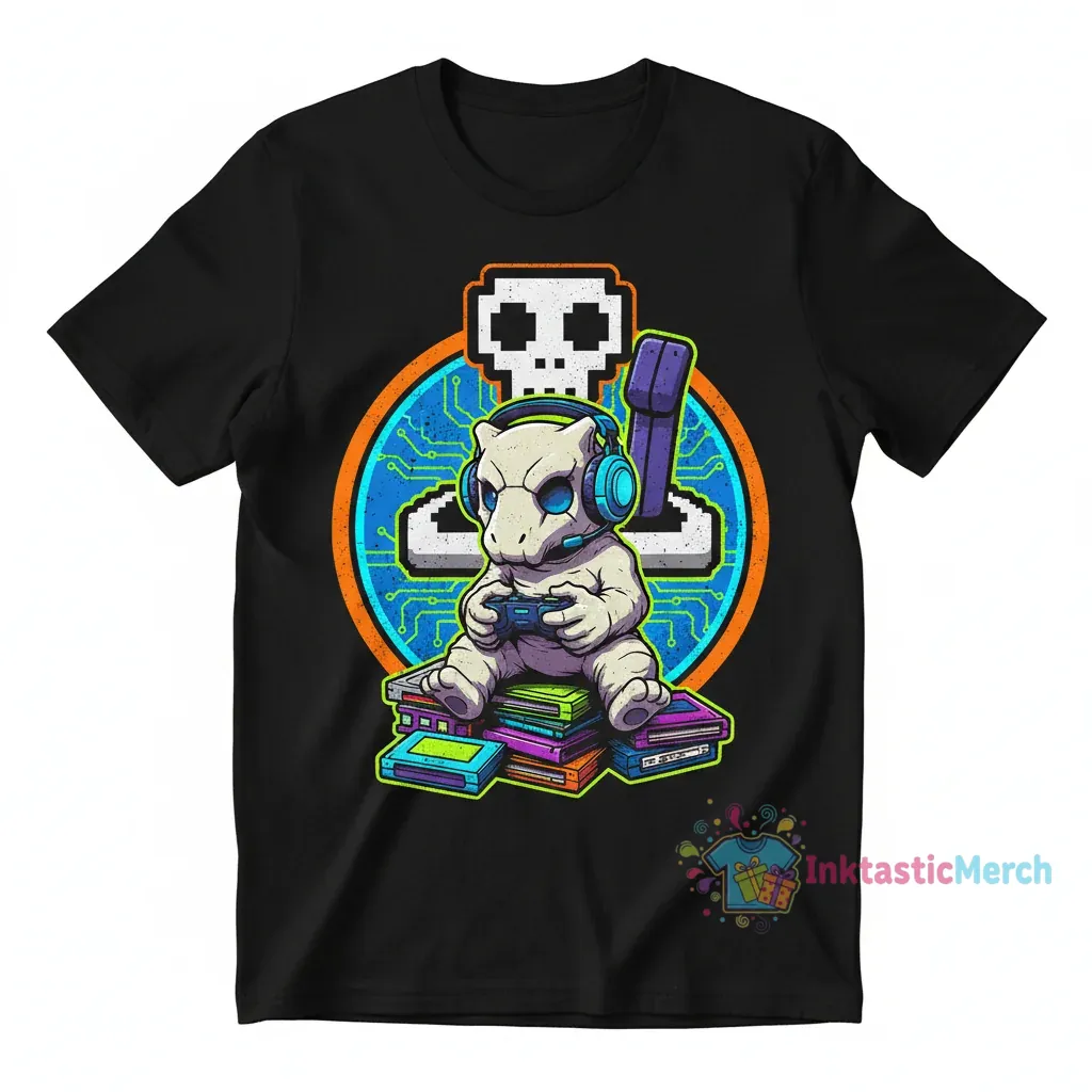 The Gamer Cubone Pokémon T-Shirt is the ultimate graphic tee for any Pokémon enthusiast and gamer, featuring the beloved Cubone in a unique gaming-inspired design.