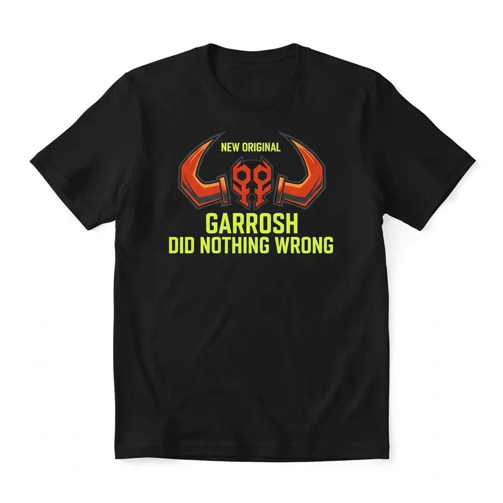 To maintain the vibrant print and fabric quality of your Garrosh Did Nothing Wrong T-Shirt, machine wash cold, inside-out, with like colors. Tumble dry low or hang-dry for best results. Do not iron directly on the design. This easy-care garment is perfect for everyday wear, whether you’re battling foes in-game, attending a casual gathering, or simply relaxing at home. Its blend of comfort, durability, and iconic design makes it a versatile staple for any fan’s wardrobe.