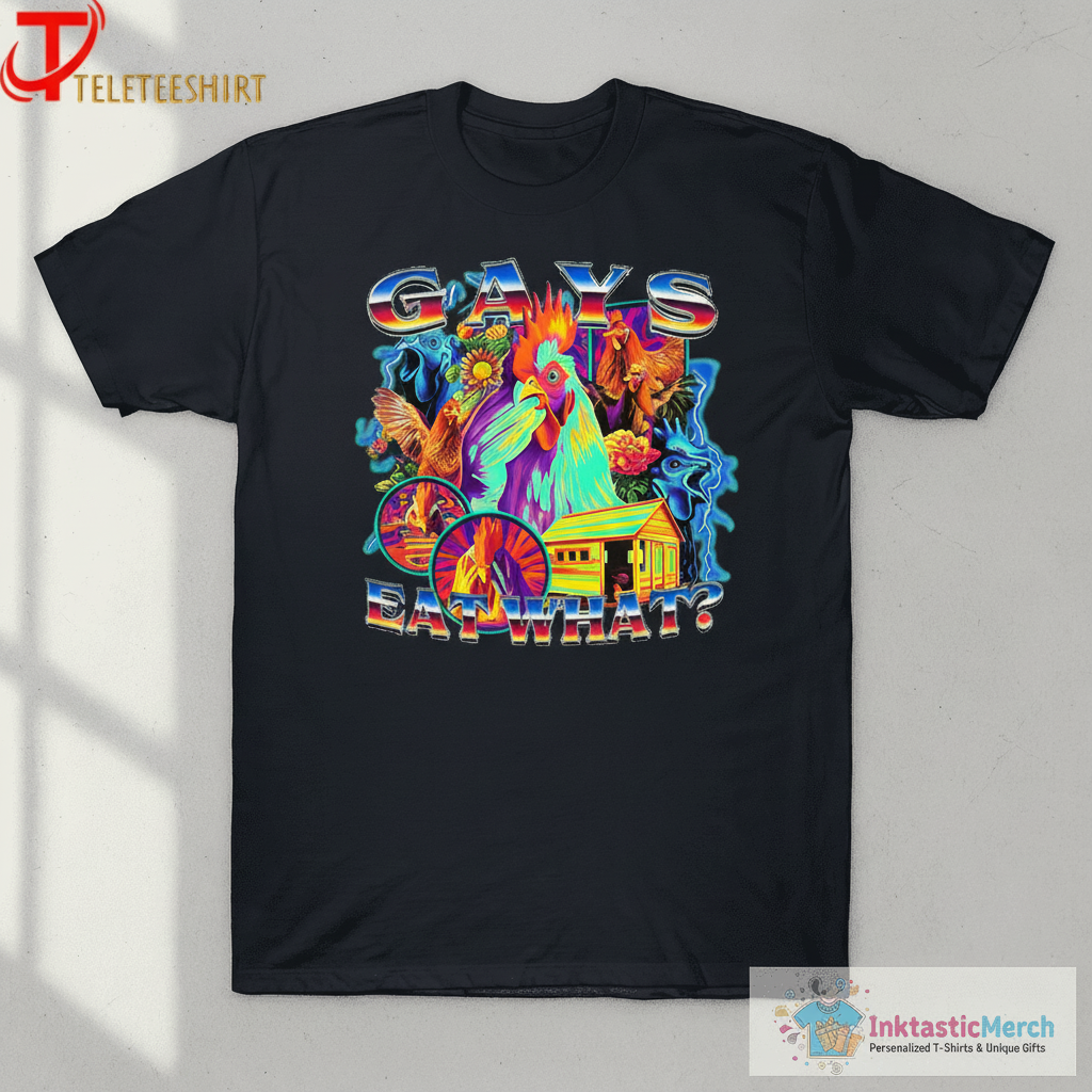 Show off your pride and your appetite with the Gays Eat What Rosster T-shirt! This unique tee features a fun and eye-catching design crafted from super soft, high-quality fabric for ultimate comfort. You’ll love how this statement piece sparks conversation and smiles, perfectly expressing your personality and support for inclusivity, all available from InktasticMerch.