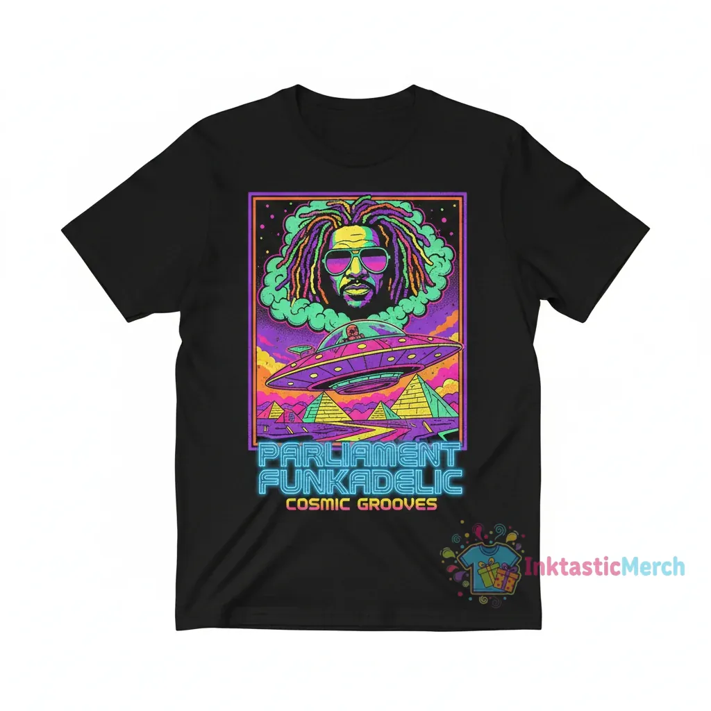 Introducing the George Clinton Parliament Funkadelic tee, a statement piece designed for the streets that effortlessly blends iconic funk with contemporary style. Crafted from premium, ultra-soft fabric, this shirt offers unmatched softness and feel for all-day wear, showcasing the quality you can expect from inktasticmerch.com. With its durable print and modern, unisex fit, this tee is your go-to for laid-back cool and standout style.