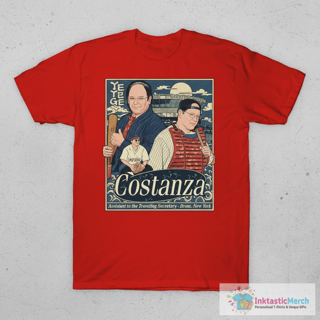 Show off your love for Seinfeld and classic New York with the George Costanza Assistant To The Traveling Secretary T-shirt. This tee celebrates a beloved character and iconic location, making it a must-have for any fan. It’s more than just a shirt; it’s a statement piece that brings a touch of New York charm and a dose of humor to your everyday look. Perfect for casual outings or binge-watching your favorite episodes, this t-shirt is designed to be a staple in your wardrobe.