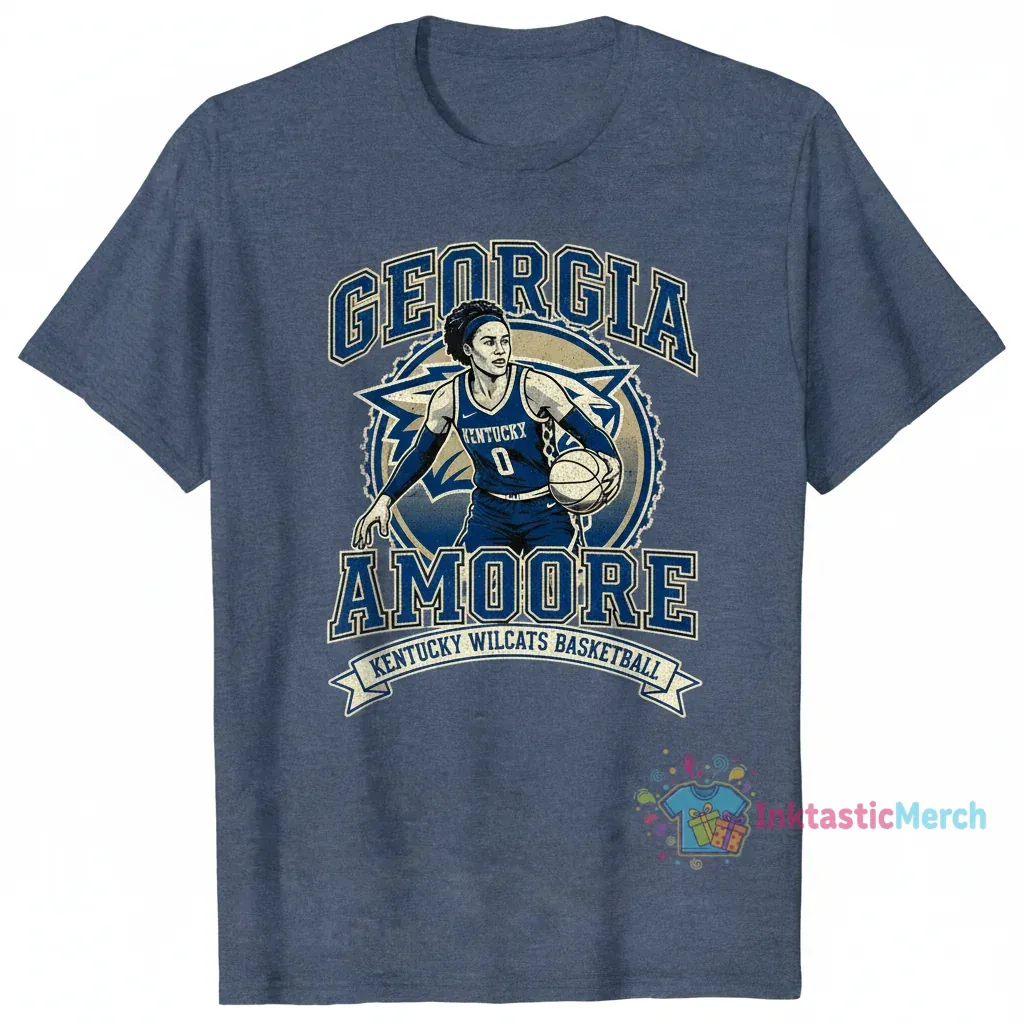 Show your unwavering support for Georgia Amoore and the Kentucky Wildcats women’s basketball team with this officially licensed vintage t-shirt. Crafted from 100% ring-spun cotton for exceptional comfort and longevity, this premium tee blends classic style with modern comfort, making it an ideal addition to your fan apparel collection. You can explore more fan apparel and unique designs at inktasticmerch.com.