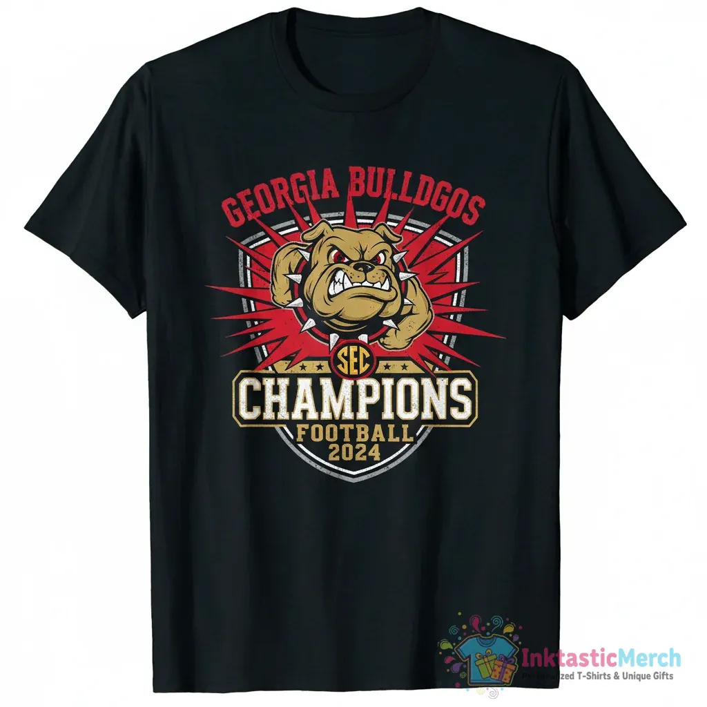 Celebrate the Georgia Bulldogs’ 2024 Southeastern Conference Football Championship with this premium quality commemorative T-shirt! Crafted for comfort and lasting style, this must-have shirt is designed for true Bulldogs fans and is available from inktasticmerch.com. It’s a comfortable reminder of an unforgettable season, featuring an official design, ultra-soft premium cotton blend, and a vibrant, long-lasting print.