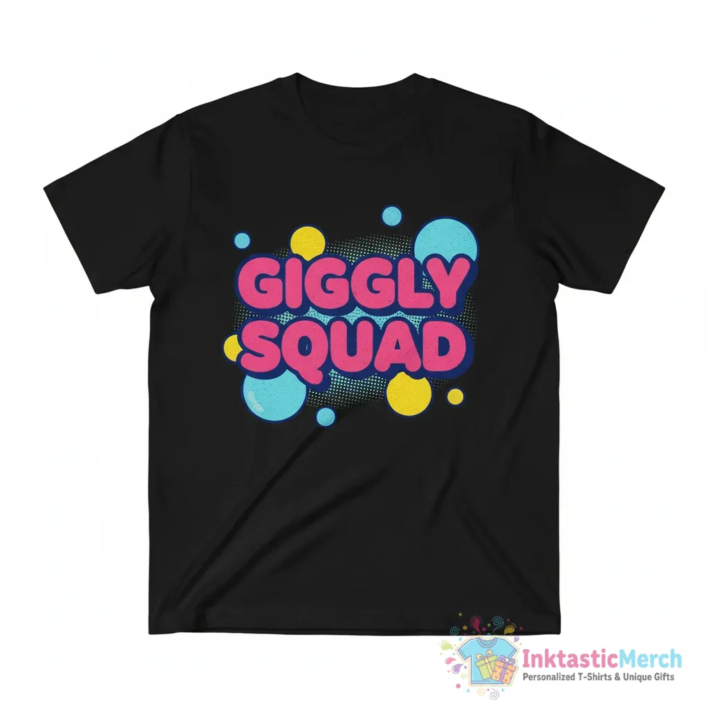 Get ready to feel amazing in this super soft tee. We picked a fabric that feels great against your skin, so you can wear it all day long without any discomfort. The eye-catching Giggly Squad bubble logo is printed with care, ensuring it looks vibrant and stays put, wash after wash. It’s the perfect blend of cool design and everyday wearability. This shirt isn’t just clothing; it’s a statement of fun and good vibes. You’ll love how easily it pairs with your favorite jeans or shorts, making it a go-to piece for any casual occasion. Add a pop of personality to your look with this awesome shirt!
