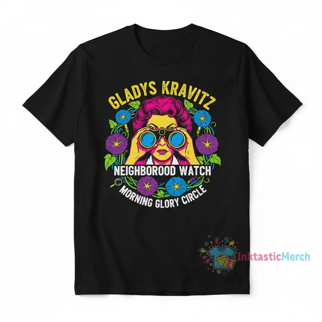 This Gladys Kravitz Neighborhood Watch tee redefines casual cool. It’s the ultimate statement piece for those who appreciate subtle nods to iconic characters and a laid-back, yet undeniably stylish vibe. Embrace the era of effortless cool.