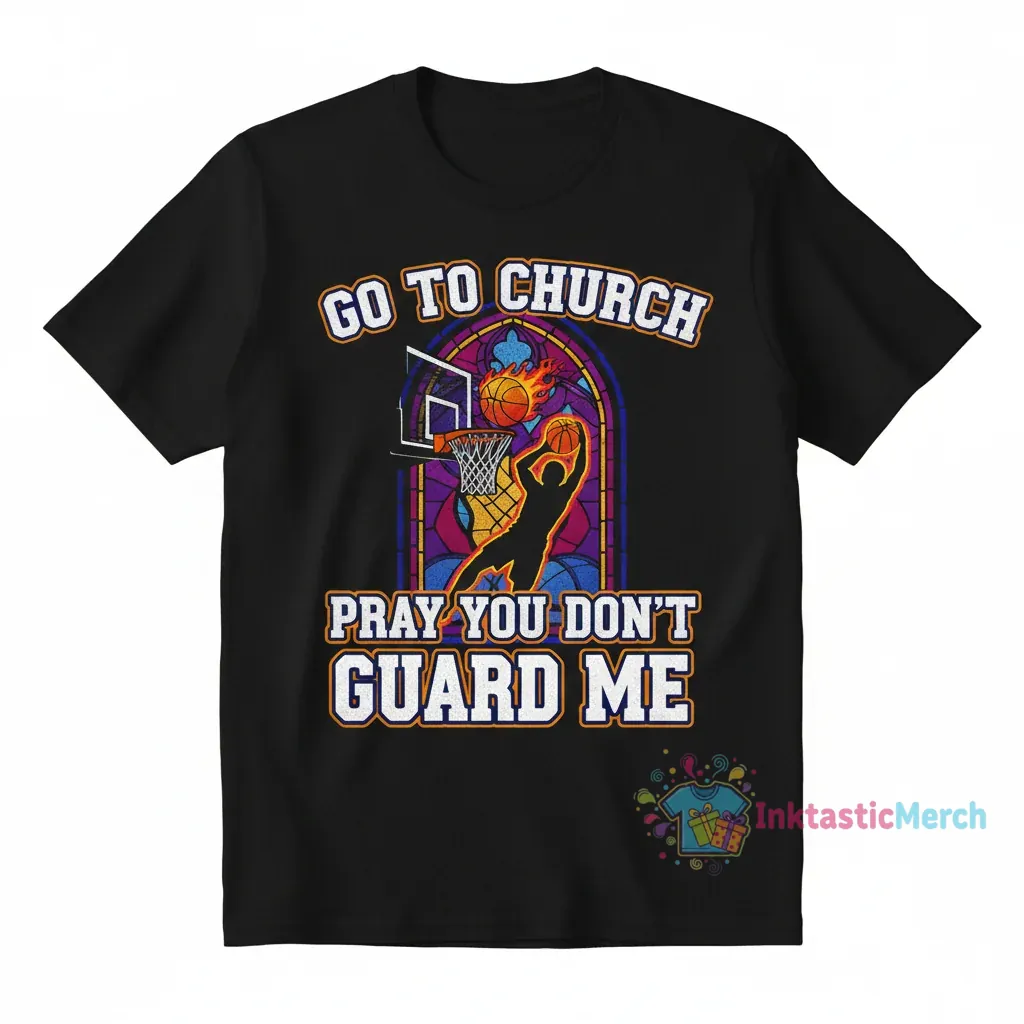 Elevate your style and showcase your passion for basketball with the “Go to Church Pray You Don’t Guard Me” t-shirt from InktasticMerch. Crafted from 100% premium pre-shrunk cotton and printed with vibrant, eco-friendly inks, this tee offers unparalleled comfort and durability, ensuring a perfect fit wash after wash. Experience the difference quality makes with this durable and fade-resistant statement piece, ideal for any occasion from the court to casual outings.