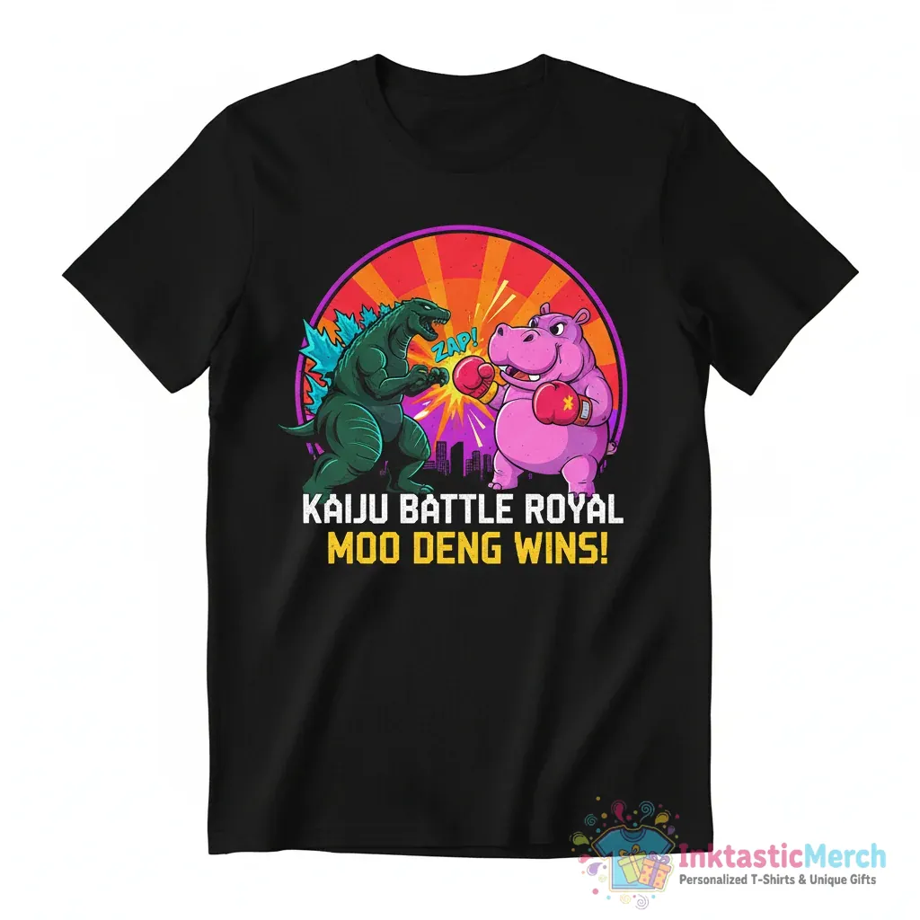 Get ready for an epic clash with the Godzilla vs Moo Deng fight shirt from InktasticMerch! Crafted from super soft, high-quality fabric, this tee features a unique and eye-catching design that brings together two legendary forces. The vibrant print showcases the epic battle in stunning detail, making it a must-have for any fan seeking comfort and style.