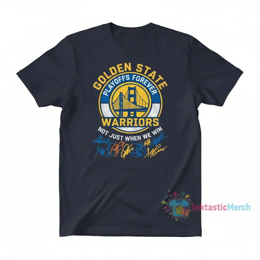 Celebrate the Golden State Warriors’ enduring legacy with the NBA Playoffs Forever Signatures T-Shirt. This tee is designed for the true fan who supports the team not just during victories, but through every season and every playoff run. Featuring iconic signatures, this shirt is a testament to the team’s consistent presence and impact in the NBA. Show your unwavering loyalty and passion for the Warriors, proving your fandom extends beyond just wins. Perfect for game days, casual wear, or as a collector’s item for any dedicated Golden State Warriors supporter. This shirt embodies the spirit of resilience and consistent high performance that defines the Warriors.