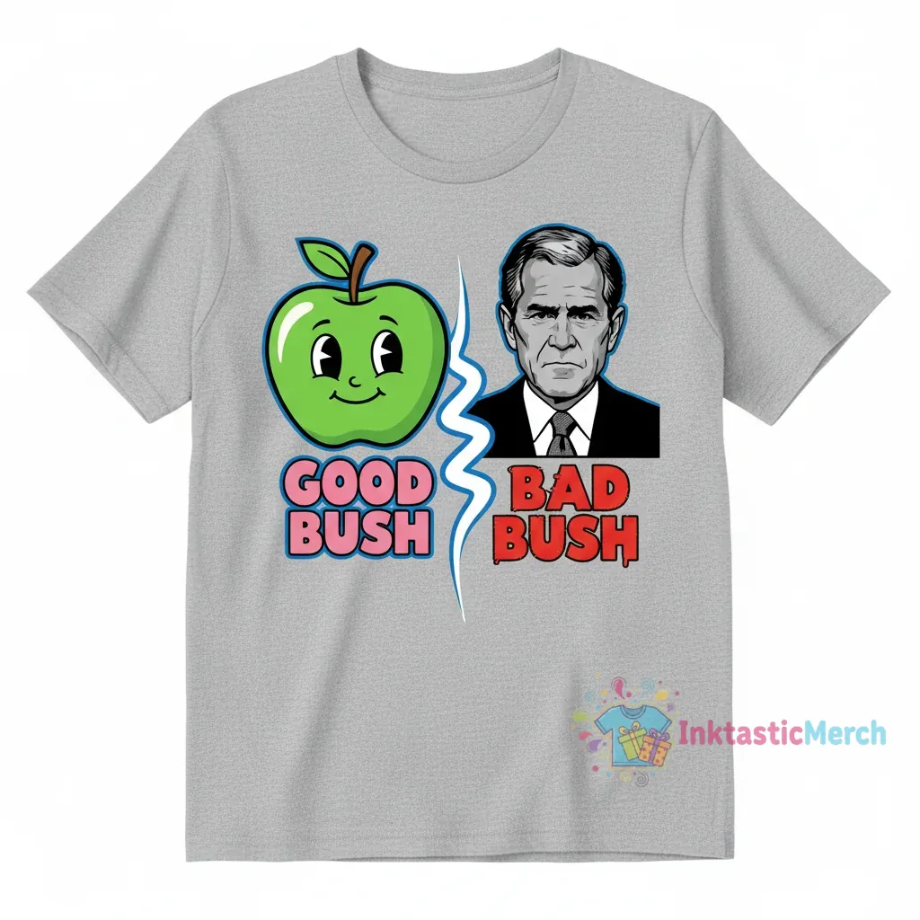 Embrace modern street style with the “Good Bush Bad Bush George W Busch Apple Tee” from InktasticMerch. Crafted from premium cotton, this tee offers unmatched softness and a high-end fabric feel, ensuring elevated comfort. Featuring a bold statement graphic and a durable, long-lasting print, it’s designed to be effortlessly cool and define your look.