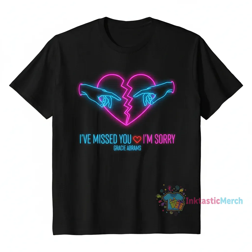 Embrace effortless cool with the Gracie Abrams “I’ve missed you, I’m sorry” Tee, a minimalist and iconic piece designed for the modern wardrobe. Crafted from premium, ultra-soft fabric for unmatched comfort and durability, this tee is perfect for all-day wear. Discover more fan-favorite apparel and celebrity-inspired looks from InktasticMerch.