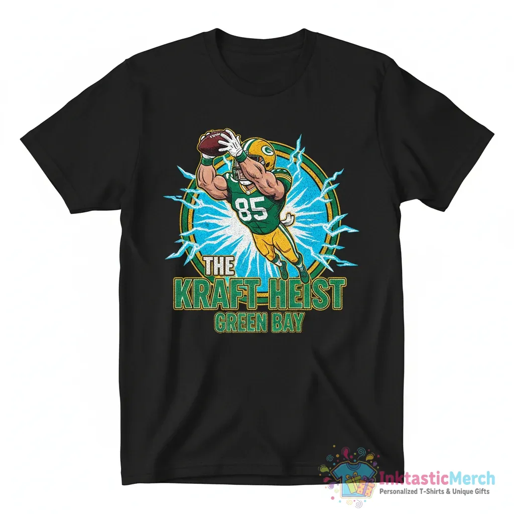 This Green Bay Packers Tucker Kraft cartoon shirt is perfect for dedicated Packers fans, football enthusiasts, and anyone who appreciates unique sports apparel. It makes a fantastic gift for birthdays, holidays, or just to surprise a fellow fan. Wear it to Lambeau Field, local sports bars, tailgates, or simply as a go-to casual shirt that expresses your passion for the team and its promising talent.