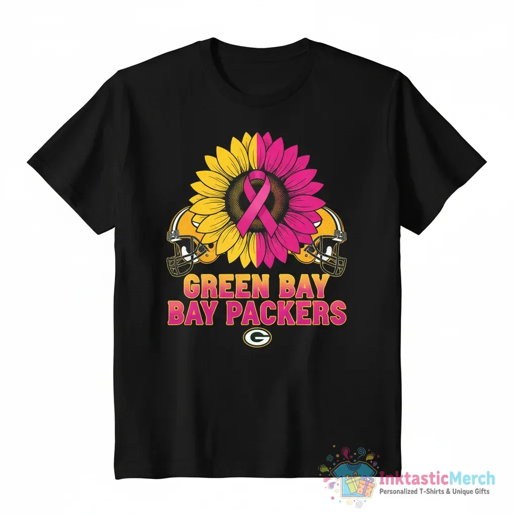 Show your support for the Green Bay Packers and breast cancer awareness with this special Green Bay Packers x Breast Cancer Awareness Month 2025 Sunflower Shirt. This premium quality tee is designed for true fans who want to make a difference. Featuring a beautiful sunflower design intertwined with Packers pride, this shirt is a vibrant way to celebrate the team and support a crucial cause during October 2025. It’s more than just a T-shirt; it’s a statement of solidarity and team spirit.