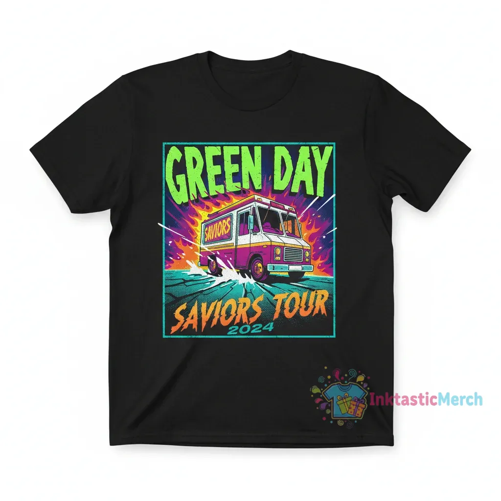 Embrace rebellion and urban exploration with the Green Day Saviors Tour Burning Truck Tee from InktasticMerch. Crafted from durable, high-quality fabric, this tee offers supreme comfort and a street-ready edge, making it a must-have for any fan or streetwear enthusiast.