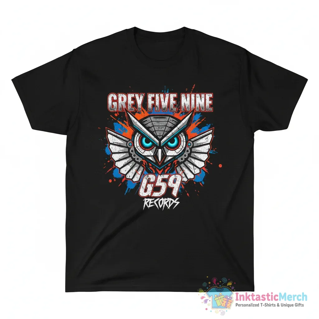 Show off your love for the iconic Grey Five Nine G59 Records with this premium quality t-shirt. Designed for fans and fashion-forward individuals alike, this tee embodies the distinctive G59 aesthetic. It’s more than just a shirt; it’s a statement piece that connects you to the underground music scene. Perfect for everyday wear, this shirt is built to last and impress.