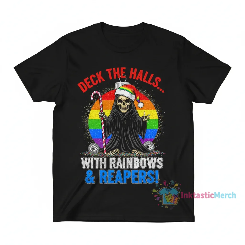 This unique Grim Reaper Christmas shirt, perfect for holiday parties and casual wear, celebrates individuality with a blend of dark humor and festive spirit. Crafted from 100% ring-spun cotton with a modern retail fit and durable construction, it offers exceptional softness and longevity, embodying the quality expected from inktasticmerch.com.
