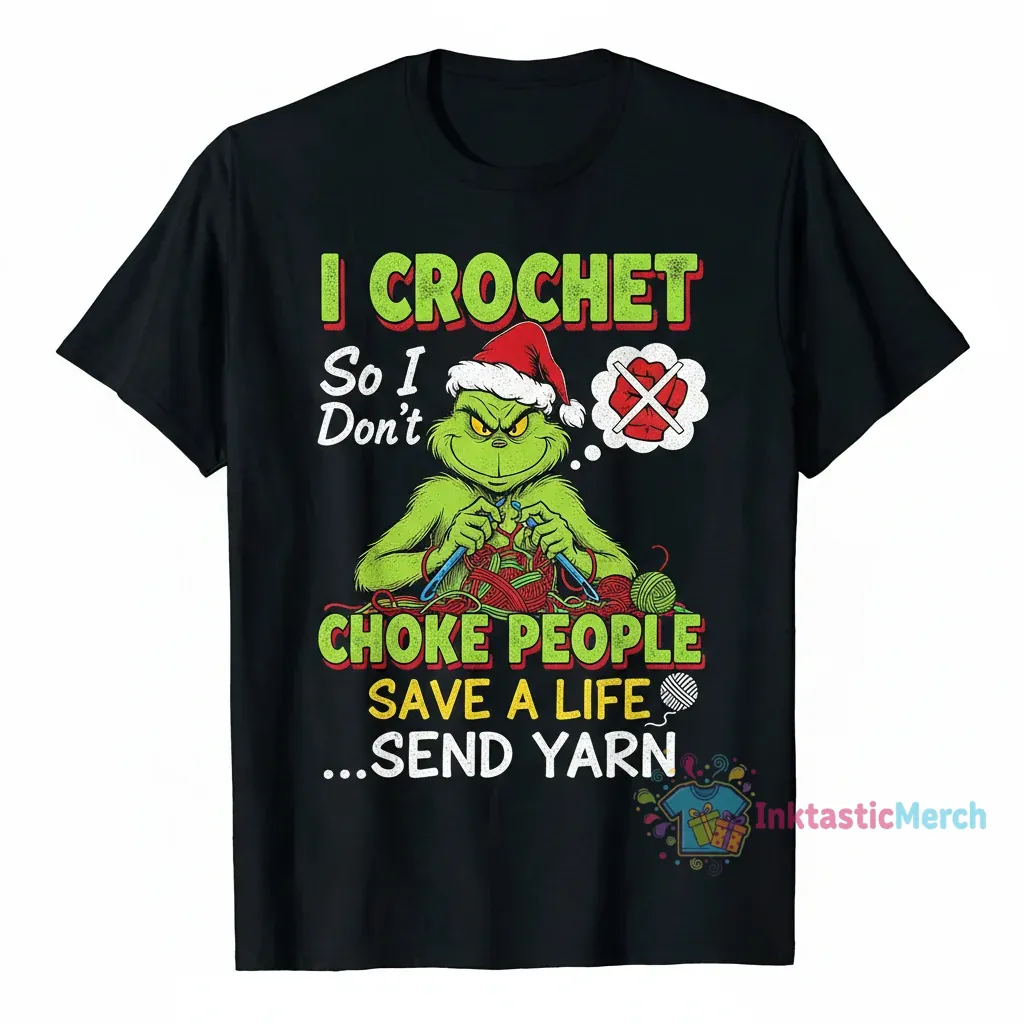 Experience premium comfort with the Grinch Crochet: Save a Life, Send Yarn Tee, crafted from exceptionally soft, high-end fabric that drapes perfectly for a luxurious feel. This tee, from InktasticMerch, offers a durable, conversation-starting graphic designed for casual, everyday wear.