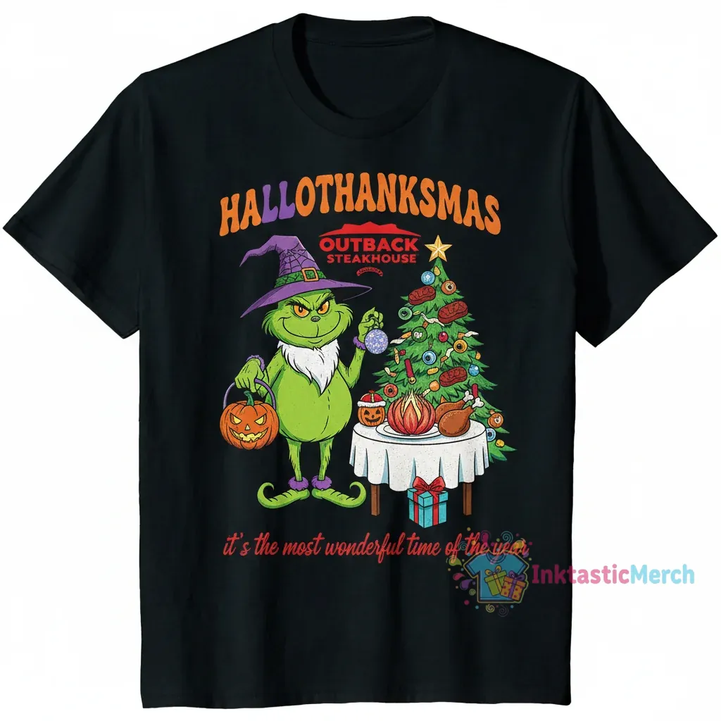 Celebrate the ultimate holiday mashup with the Grinch Hallothanksmas x Outback Steakhouse “It’s the Most Wonderful Time of the Year” shirt. This unique tee combines the mischievous charm of the Grinch with the festive spirit of Hallothanksmas and a nod to Outback Steakhouse, making it the perfect statement piece for any fan of holiday cheer and iconic characters. Designed for comfort and style, this shirt is ideal for casual wear, holiday gatherings, or as a memorable gift for collectors of themed apparel. Showcasing a vibrant design, this shirt captures the essence of a truly wonderful time of year, blending humor and holiday tradition into a wearable piece of art.
