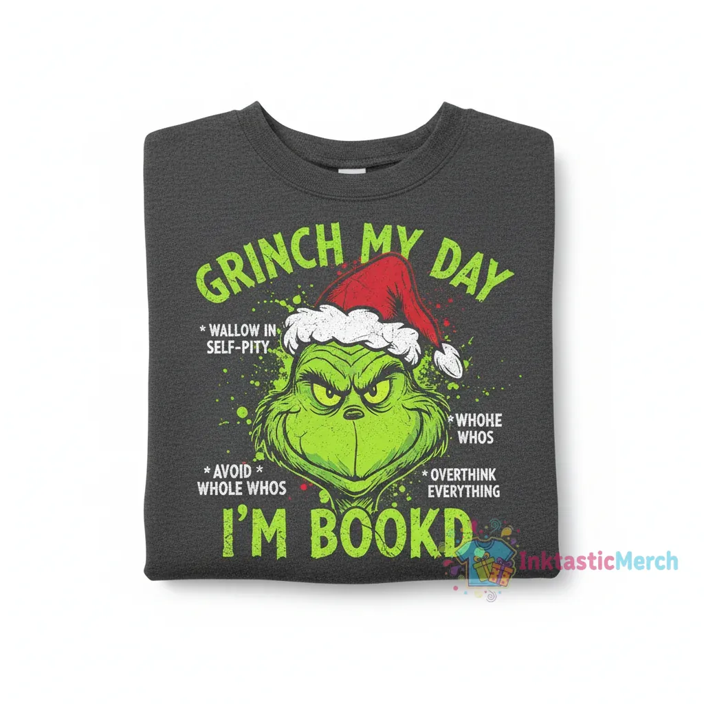 Don’t let the ‘holiday’ theme fool you – this sweater is versatile enough for year-round wear, especially for those days when only a touch of Grinch-like introspection will do. Its robust construction and fade-resistant print mean it’s built to withstand the test of time and wear. Pair it with jeans for a casual outing, layer it over a collared shirt for a more put-together look, or simply rock it on the couch while you perfectly embody the spirit of ‘wallowing in self-pity.’ Invest in a piece that reflects your personality and stands up to your lifestyle. Add the ‘Grinch My Day Wallow in Self-Pity I’m Booked’ sweater to your cart today and embrace your mood in style!