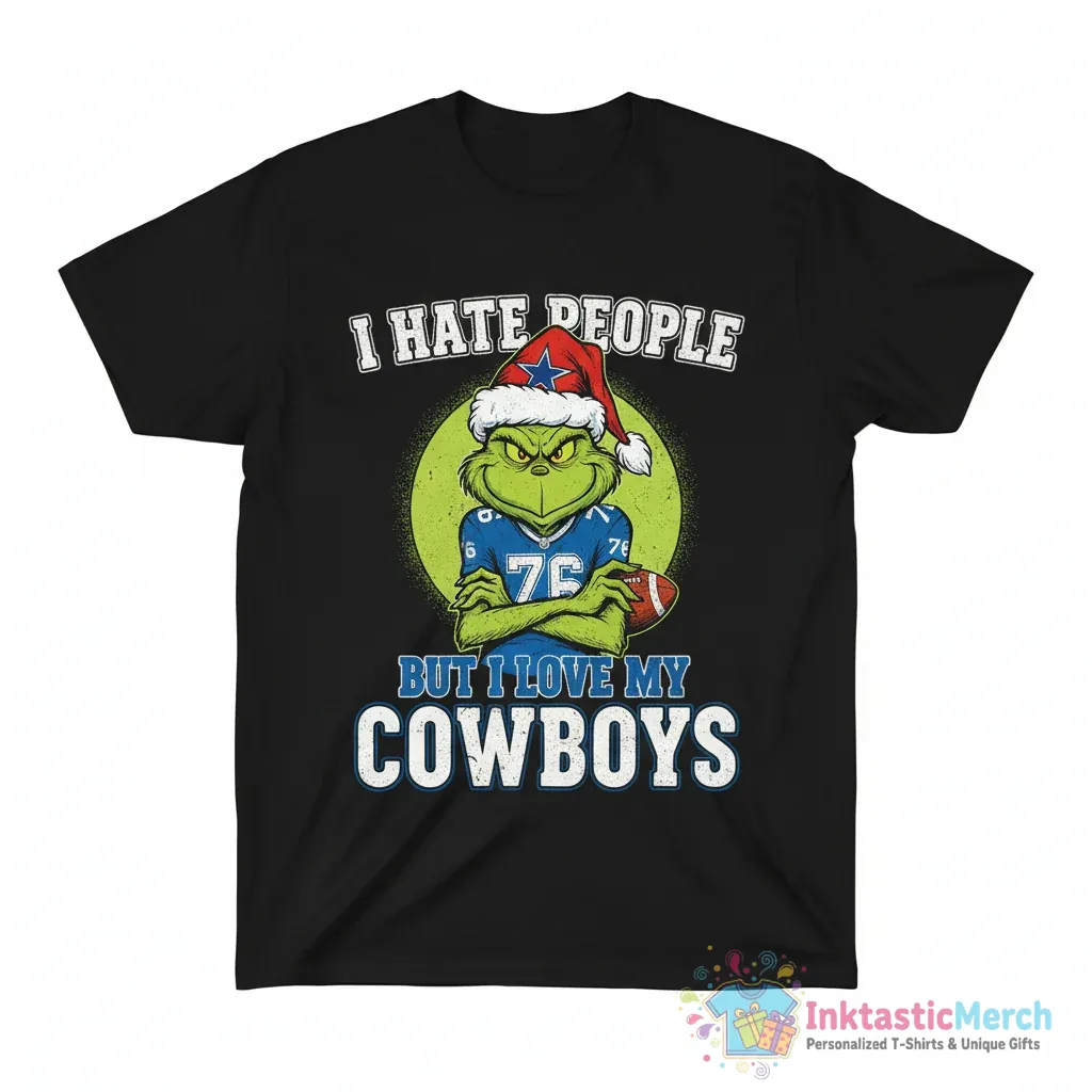 Bring your style to life with the Grinch Santa I Hate People But I Love My Cowboys shirt today!
