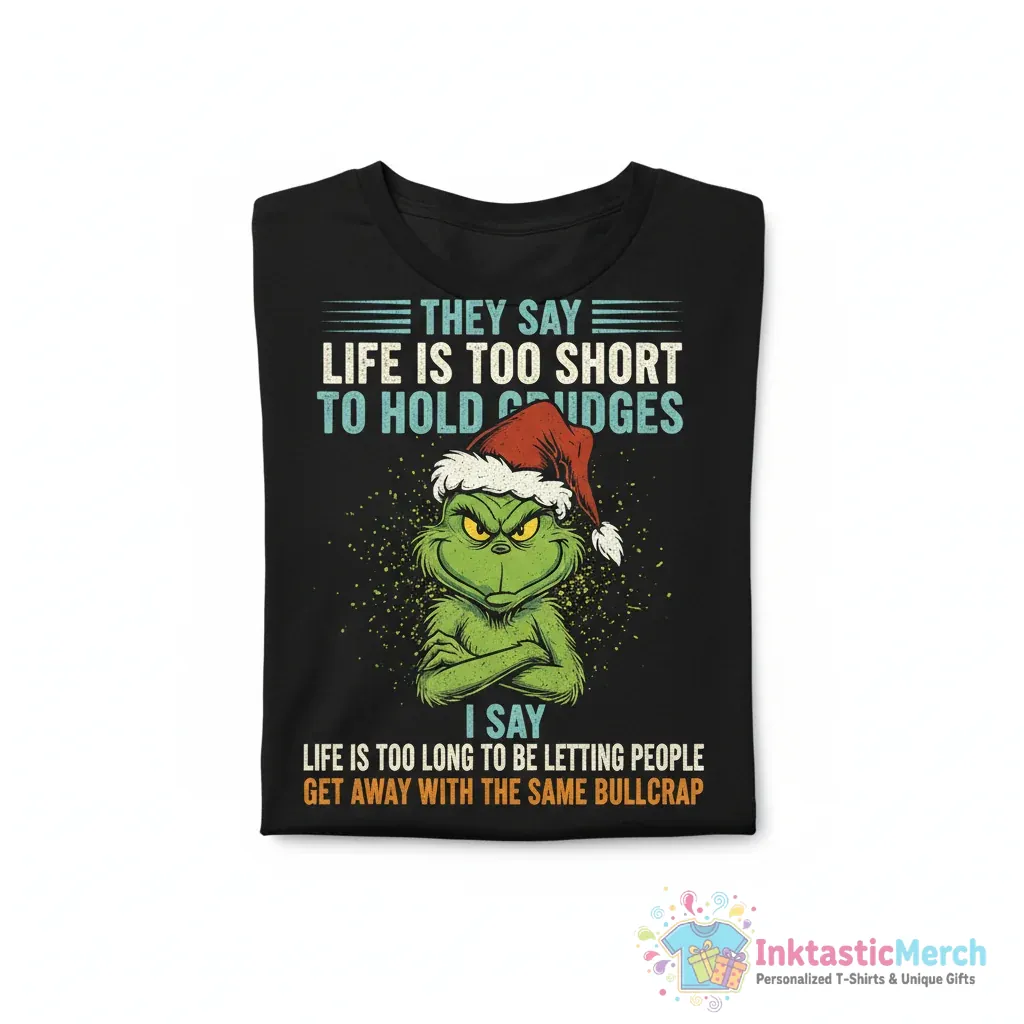 Embrace your inner Grinch with the “Grinch, they say life is too short to hold grudges, I say life is too long to be letting people” shirt. Crafted with care from premium quality fabric, this tee ensures you look good and feel great, making it a statement piece for those with a witty personality and unique style. Discover more at inktasticmerch.com.