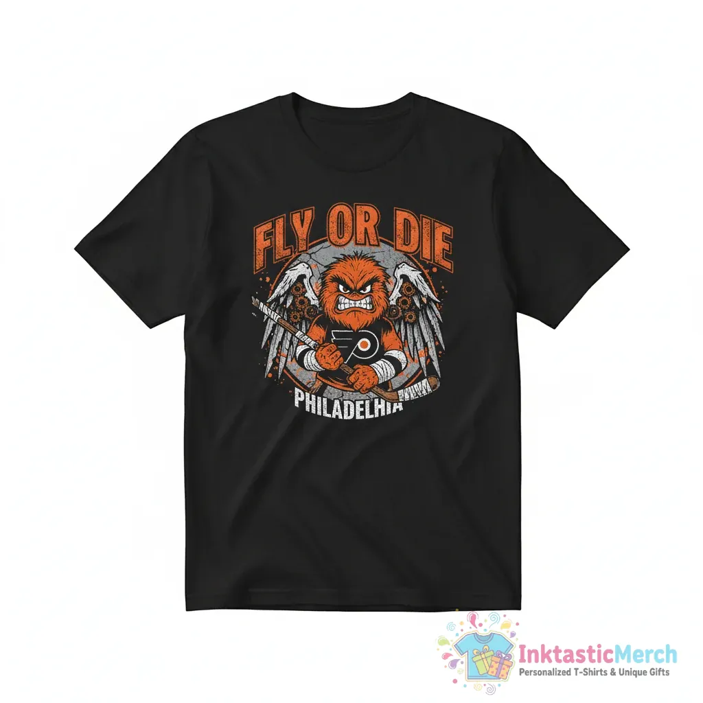 Show your unwavering support for the Philadelphia Flyers with this bold Fly or Die shirt from InktasticMerch. Crafted from exceptionally soft, high-quality fabric, this tee offers ultimate comfort and style, embodying the team’s never-give-up attitude for game days or everyday wear. The durable print ensures the vibrant design stays looking sharp, making it a must-have for any true Flyers faithful.