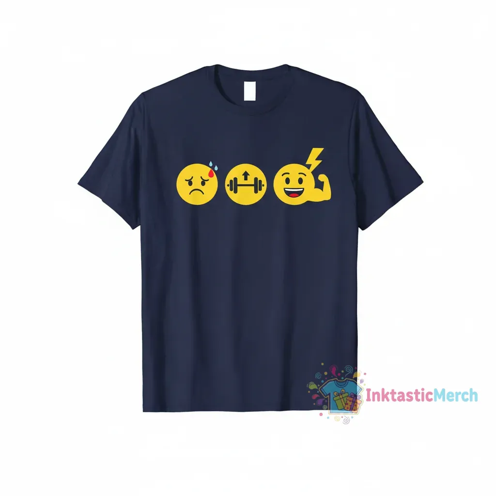 This T-shirt is designed for the fitness enthusiasts, the positivity advocates, and anyone who believes that working out should be fun. If you love to express your personality through unique graphics and appreciate art that brings a smile to your face, this tee is for you. It’s for the trend-setters who aren’t afraid to wear their happiness and for the individuals who find joy in movement and self-expression.
