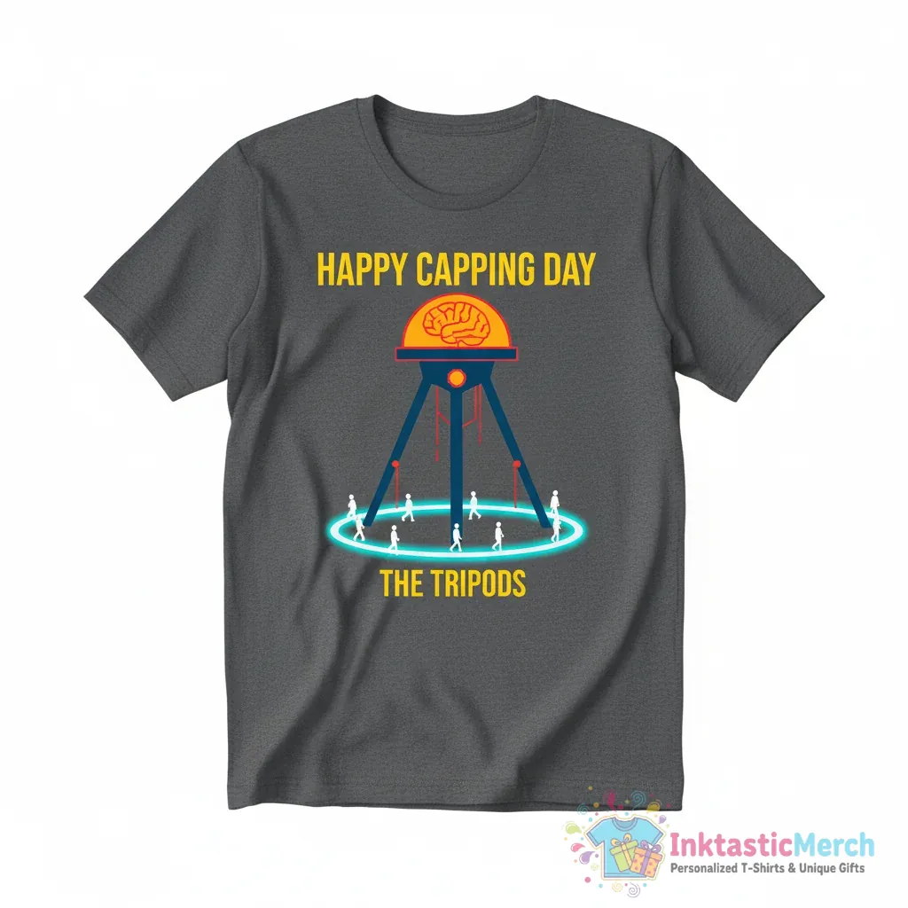 Celebrate your love for The Tripods with the exclusive “Happy Capping Day” t-shirt from InktasticMerch. Crafted with premium quality, exceptionally soft fabric, this tee offers a comfortable and stylish way to showcase your fandom and will remain a favorite for years to come.