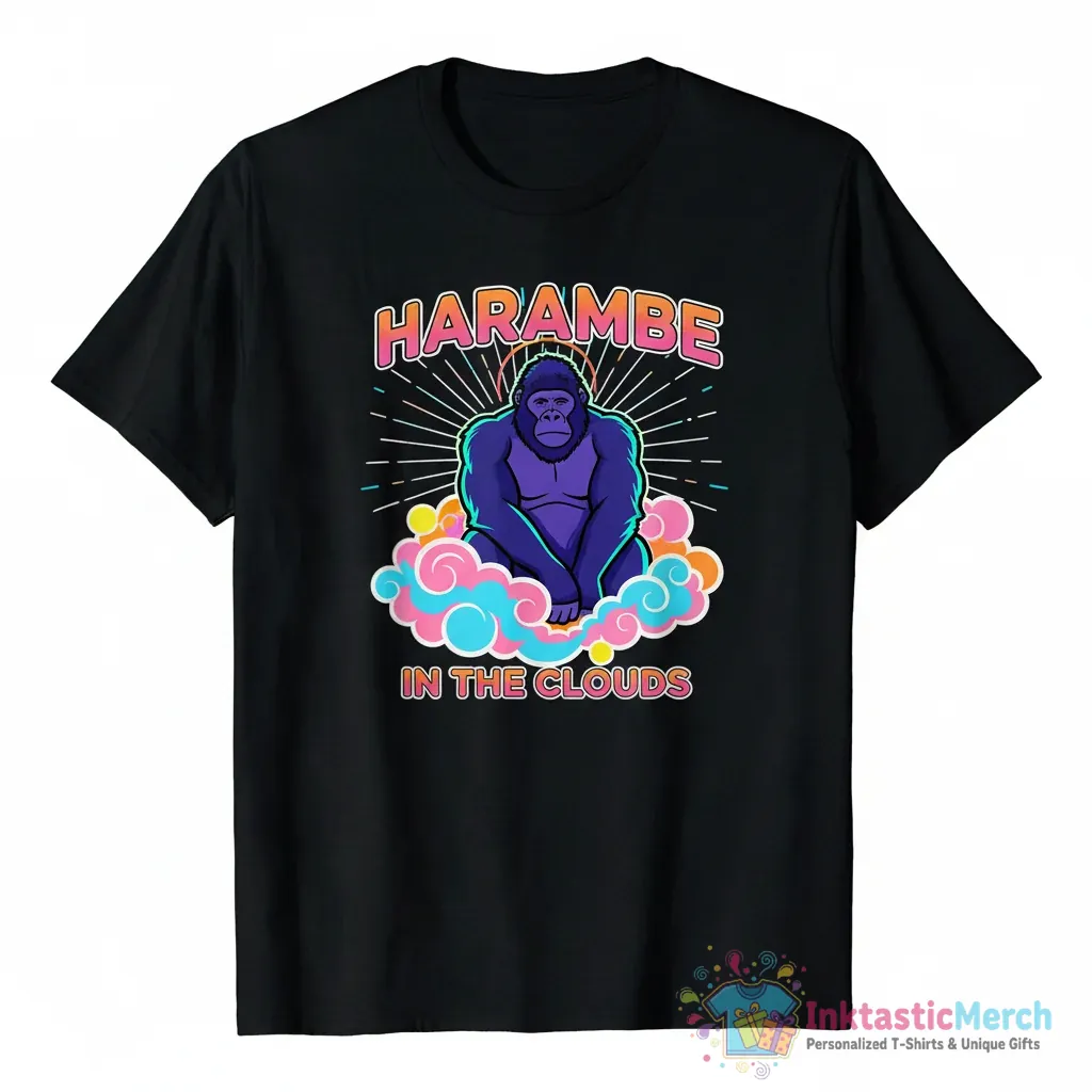 Experience the unique vibe of the Harambe In The Clouds T-shirt from InktasticMerch. This premium quality tee offers an incredibly soft feel and a captivating design, crafted from high-quality fabric for maximum comfort and durability. It’s the perfect statement piece that blends artistic expression with everyday wearability, ideal for casual outings or relaxing at home.