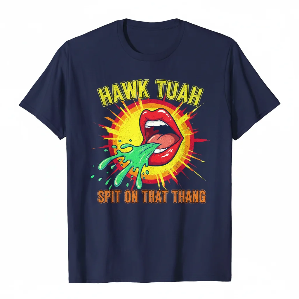 Elevate your casual wardrobe with a t-shirt that combines iconic internet humor with premium craftsmanship. This isn’t just another graphic tee; it’s a statement piece built to last. Our commitment to superior materials and printing techniques means you’ll enjoy a shirt that looks great and feels even better, ensuring you can confidently rock the “Hawk Tuah Spit on That Thang” meme wherever you go.