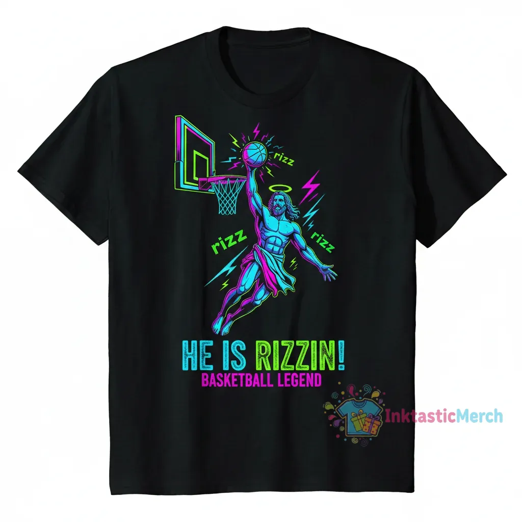 He is Rizzin’ Jesus basketball shirt! This unique design was born from a playful blend of faith and modern slang, celebrating the infectious energy and positive spirit that can be found in both spiritual journeys and the thrilling world of basketball. It’s about capturing that moment of inspiration, that spark of confidence that feels divinely guided, whether you’re on the court or navigating life’s everyday challenges. This shirt is a wearable reminder to embrace your inner strength and share your light, with a wink and a smile.