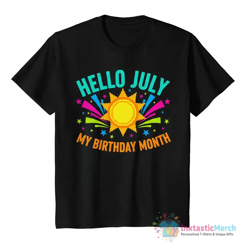 Bring your style to life with the Hello July Birthday Month T-Shirt today!