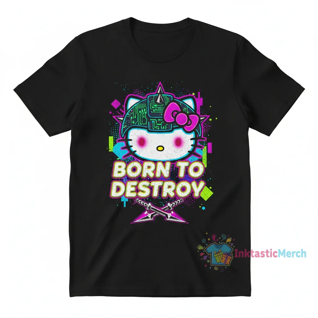 Hello Kitty Born to Kill… a bold statement on a classic icon. This design merges the undeniable charm of Hello Kitty with a rebellious spirit, celebrating the fierce and unapologetic side that exists within us all. It’s a wearable piece of art that whispers tales of inner strength and breaking free from expectations. We wanted to capture that moment of realizing your own power and owning it, all while keeping the playful essence that makes Hello Kitty so beloved. It’s about embracing duality – the sweet and the strong, the innocent and the audacious. This shirt is for those who aren’t afraid to show their true colors, a reminder that even the cutest can possess a powerful edge.