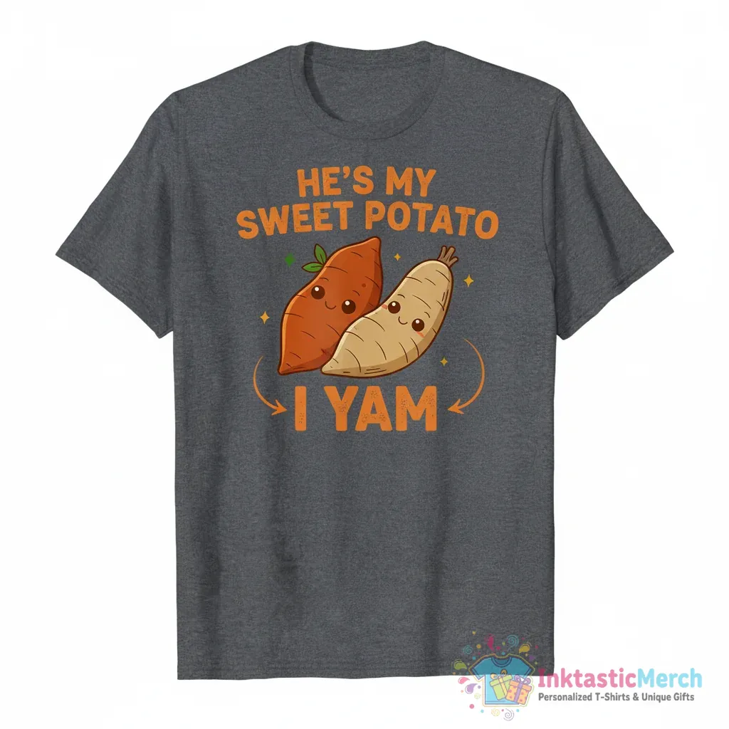 Bring your style to life with the He’s My Sweet Potato I Yam Couples T-shirt today!