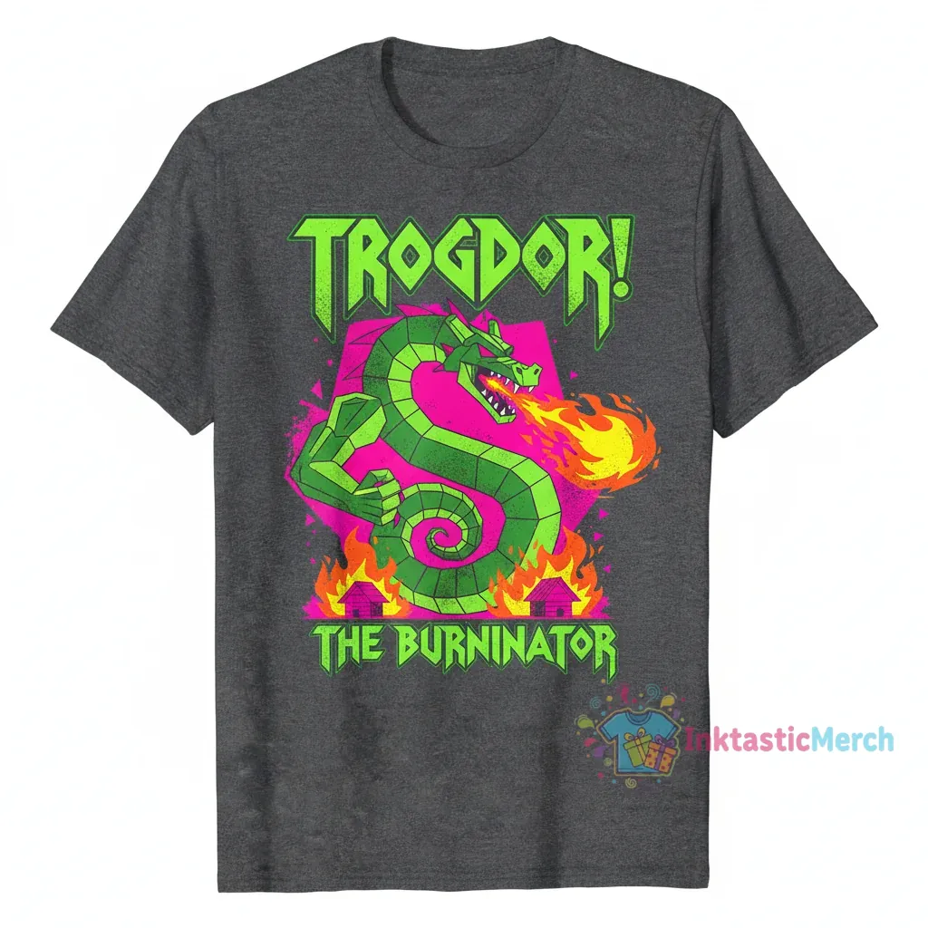 This Trogdor the Burninator t-shirt isn’t just a graphic tee; it’s a conversation starter and a statement piece. It embodies a nostalgic charm and a bold, artistic flair that instantly elevates any casual outfit. Whether you’re pairing it with your favorite jeans for a day out, layering it under a jacket for a cool evening, or rocking it at your next convention, this shirt brings a unique lifestyle vibe. It’s a reminder to embrace the fun, the quirky, and the legendary, making it an indispensable addition to your collection.