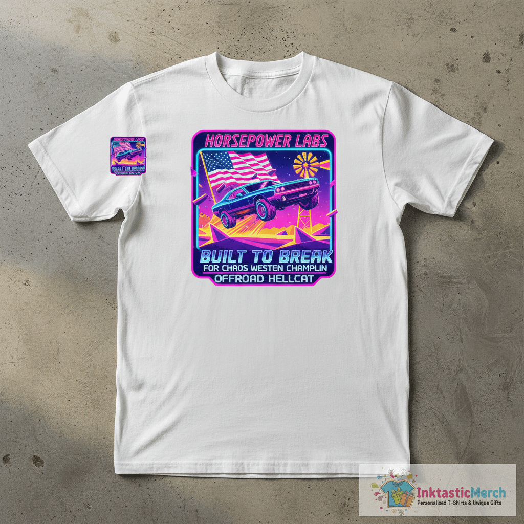 Unleash your inner rebel with the Horsepower Labs Built To Break For Chaos Westen Champlin Offroad Hellcat T-shirt, a statement for those who live life in the fast lane. Crafted for ultimate comfort and style, this tee is built to last, featuring a bold design that lets everyone know you’re part of the InktasticMerch community. Experience the quality and wear your passion for powerful engines and the offroad lifestyle with pride.
