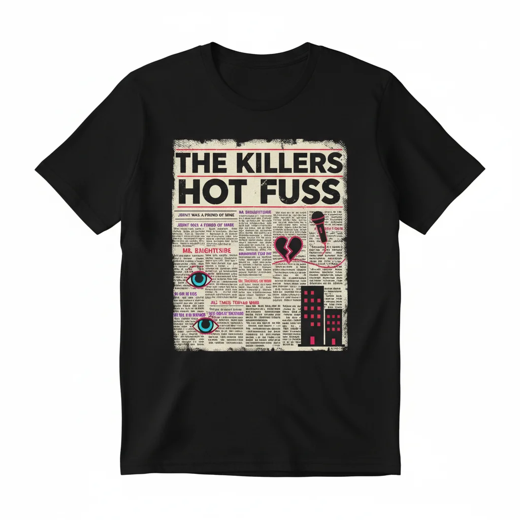 Elevate your wardrobe with the iconic “Hot Fuss The Killers Newspaper Lyrics Album Cover” Essential T-Shirt. This isn’t just another band tee; it’s a statement piece designed for true fans who demand both style and substance. Say goodbye to flimsy shirts that lose their shape and vibrancy after a few washes. We’ve meticulously crafted this tee to be a lasting tribute to The Killers’ legendary album, ensuring you can showcase your passion for years to come without compromise.