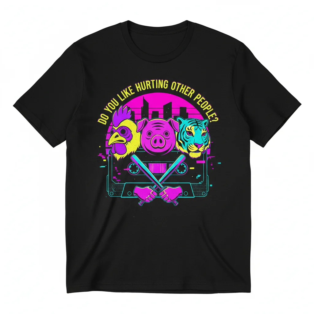 Do you like hurting other people? That iconic, unsettling question from Hotline Miami echoes through its neon-drenched world, and this shirt brings that energy to life. This isn’t just merchandise; it’s a wearable piece of original artwork inspired by the game’s unforgettable, retro-futuristic style. We aimed to capture the intense pulse and deep narrative questions in a design that is both bold and thought-provoking. It’s for the fans who understand the story behind the mask and appreciate the art that defined a generation of indie gaming. This design lets you carry a piece of that electric, pixelated world with you.