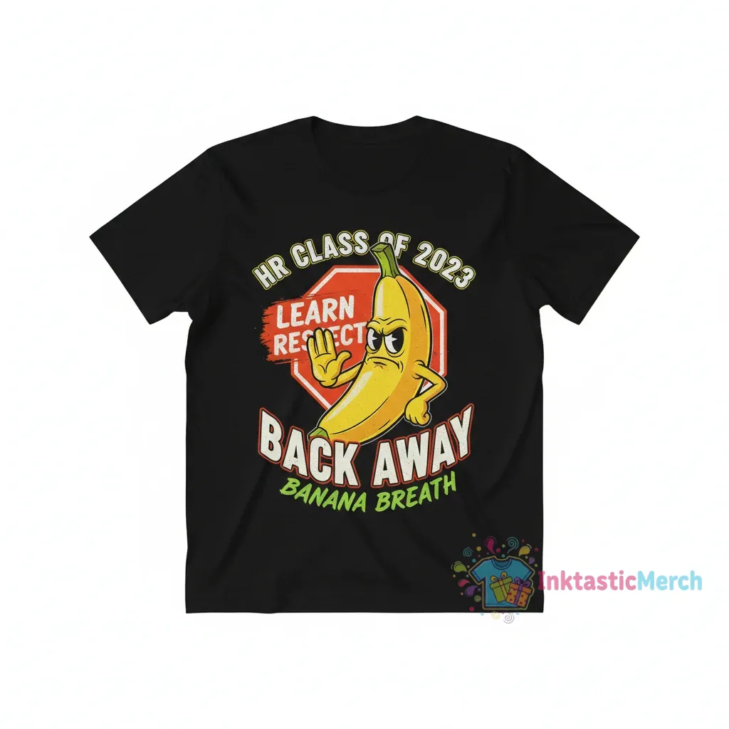 The HR Class of 2023 Learn Respect Back Away Banana Breath Shirt is the perfect humorous and memorable gift for anyone graduating from Human Resources in 2023. This uniquely designed t-shirt celebrates the achievements and inside jokes of the graduating HR class with a playful “Banana Breath” theme, symbolizing a lighthearted approach to the rigorous demands of the HR field. It’s an ideal way for graduates to commemorate their educational journey and share a laugh with peers, instructors, and HR professionals.
