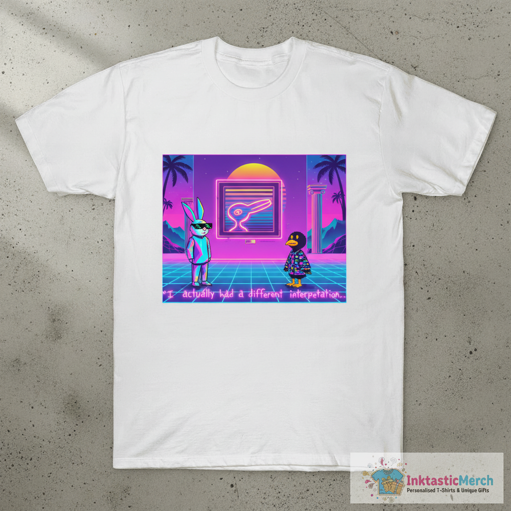 Experience the comfort and lasting quality of our “I actually had a different interpretation.” T-Shirt, a testament to the unique and creative spirit of InktasticMerch. This tee is part of our extensive collection, showcasing our dedication to bringing animated apparel to life with durable, classic cartoon styles that fans will love.