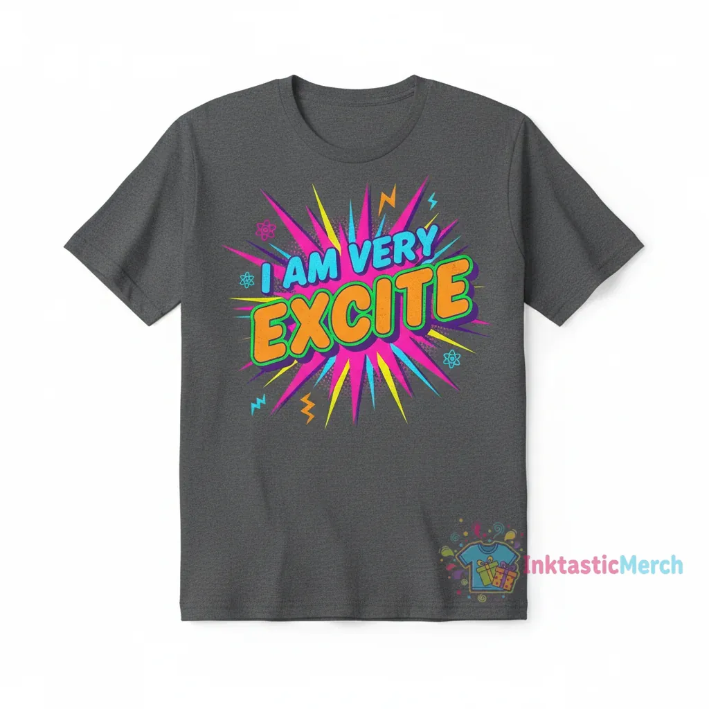 - Unique “I Am Very Excite” graphic design