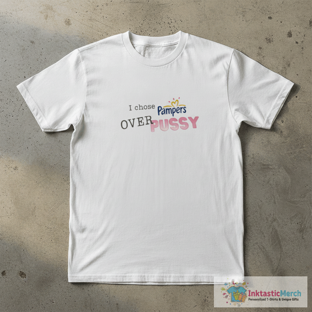 - Unique and humorous “I Chose Pampers Over Pussy” graphic design.