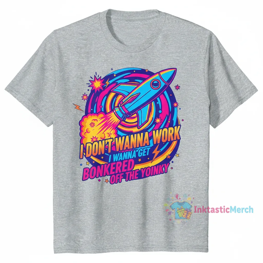 Introducing the “I Don’t Wanna Work I Wanna Get Bonkered Off The Yoinky Shirt,” a uniquely expressive and humorously relatable statement tee crafted for comfort and style. Made from 100% ring-spun cotton, this high-quality fabric ensures a soft feel and excellent breathability, embodying the commitment to quality from inktasticmerch.com. Its durable construction, including side-seamed and shoulder-to-shoulder taping, guarantees it will remain a favorite for years to come.